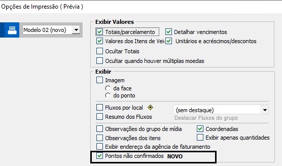 Imprimir - Incluída opção para considerar ou não pontos não confirmados na impressão da autorização, prévia entre outras opções.