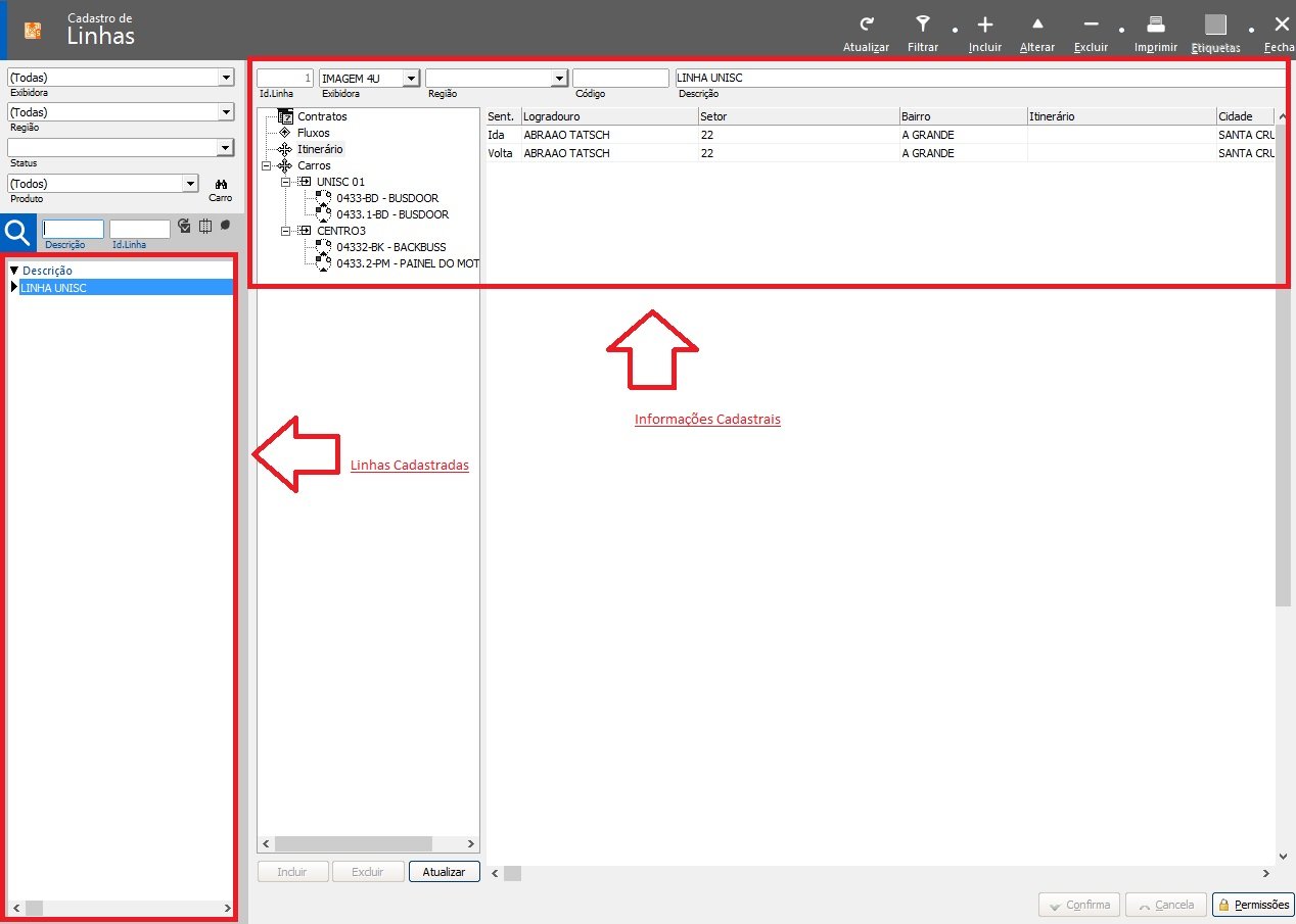 Nesta opção você poderá cadastrar as linhas de ônibus da própria empresa, quanto das exibidoras com as quais costuma trabalhar.